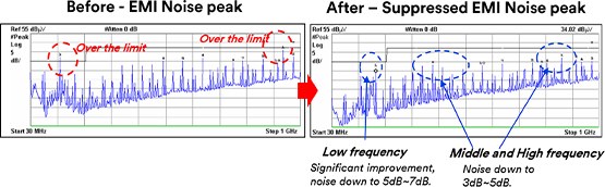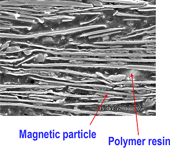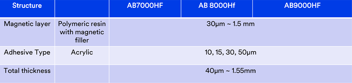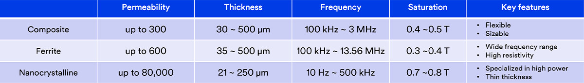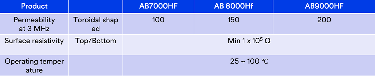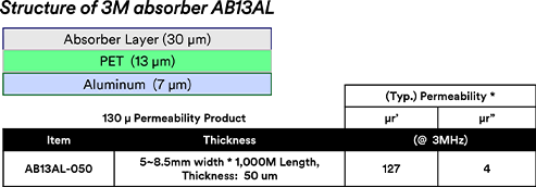 metal surface with high permeability, µ’=130, and good shielding effectiveness. It can help realize thin and smooth cable application.