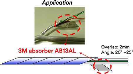 EMI absorbing on cables, IC packages, shield cans and enclosures; Combined EMI absorbing and shielding (3M™ EMI Absorber AB6000 Series)