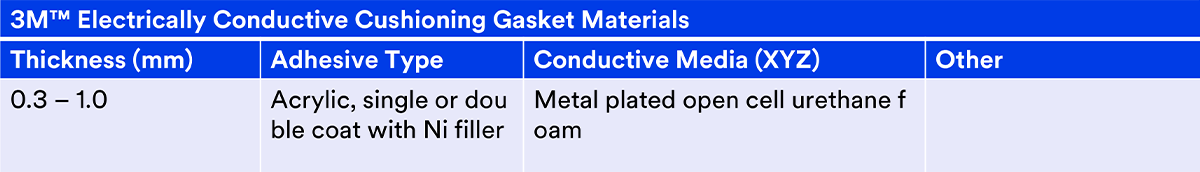 3M™ Metal Shielding Gaskets MSG6030F, MSG6060F, and MSG6100F (lower cost fabric-based products)