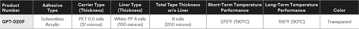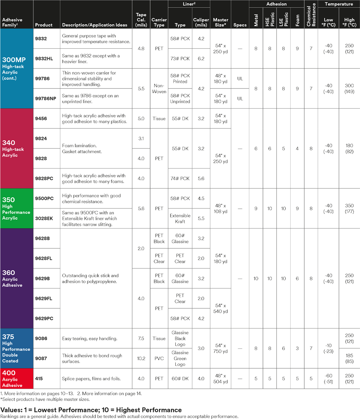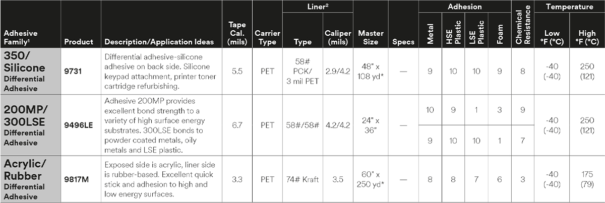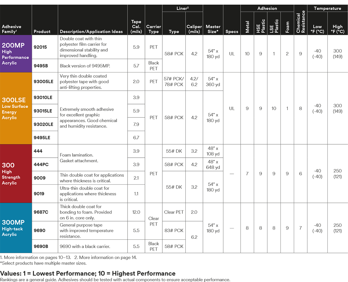 The ideal general purpose industrial thin bond tape for use in many markets including consumer appliances, industrial machinery, transportation, signage, general industrial and consumer electronics. Bonds to many high surface energy substrates and some low surface energy substrates, including: stainless steel, HDPE, ABS, acrylic, PP, polycarbonate, aluminum and glass.