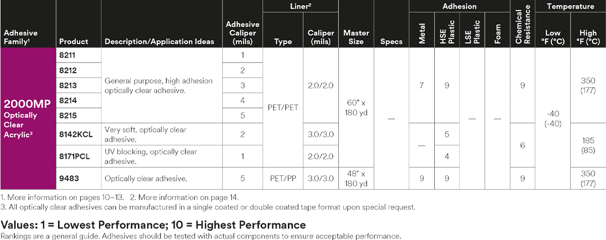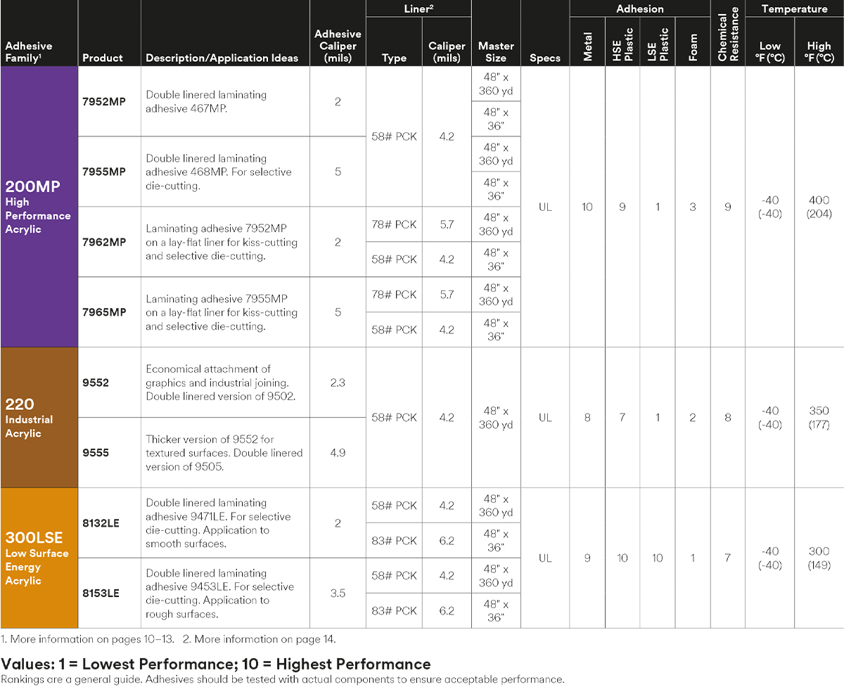 3M™ Double Linered Adhesive Transfer Tapes (cont.)